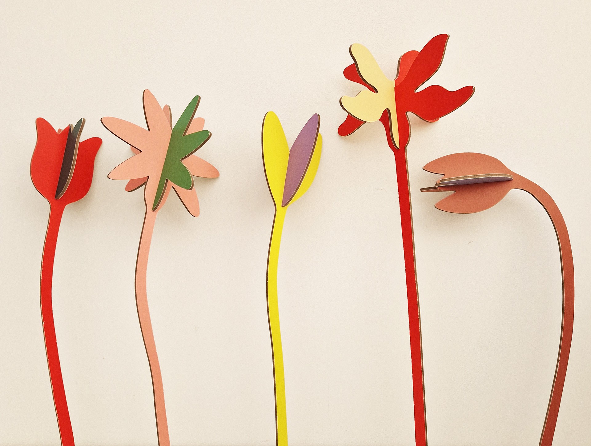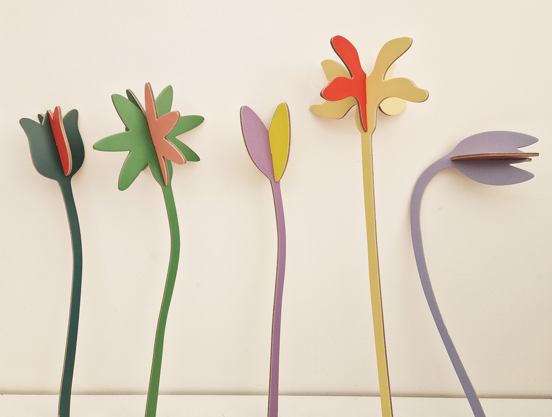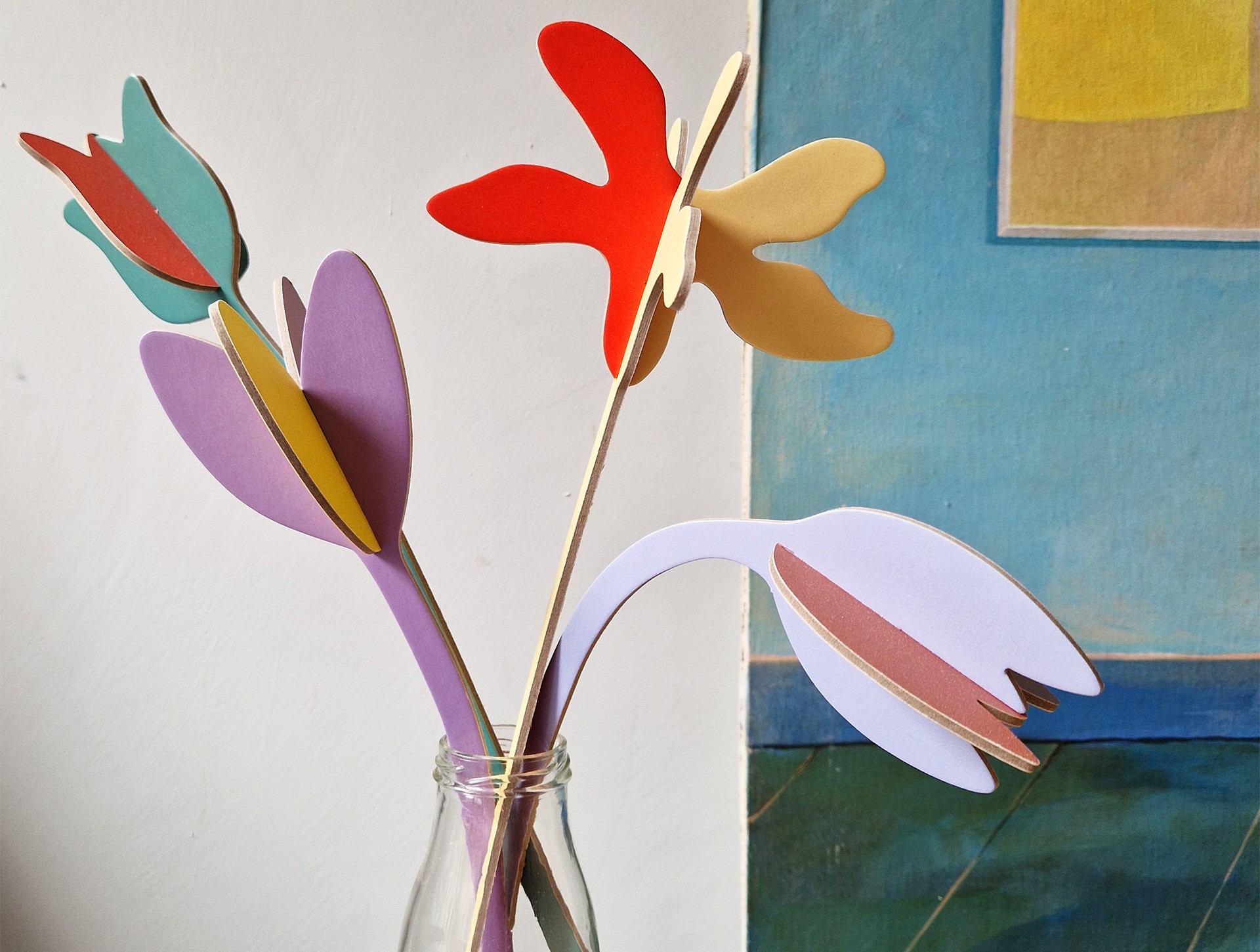 A collaboration between Studio Roof and Jantien Baas has led to a collection with flowers. This is a bouquet of 5 flowers. Nice to put in a vase and to brighten up your room or for example to hang on your wall with masking tape. All the flowers have two colours, the front and the back, so you can choose which colour you want to be visible.