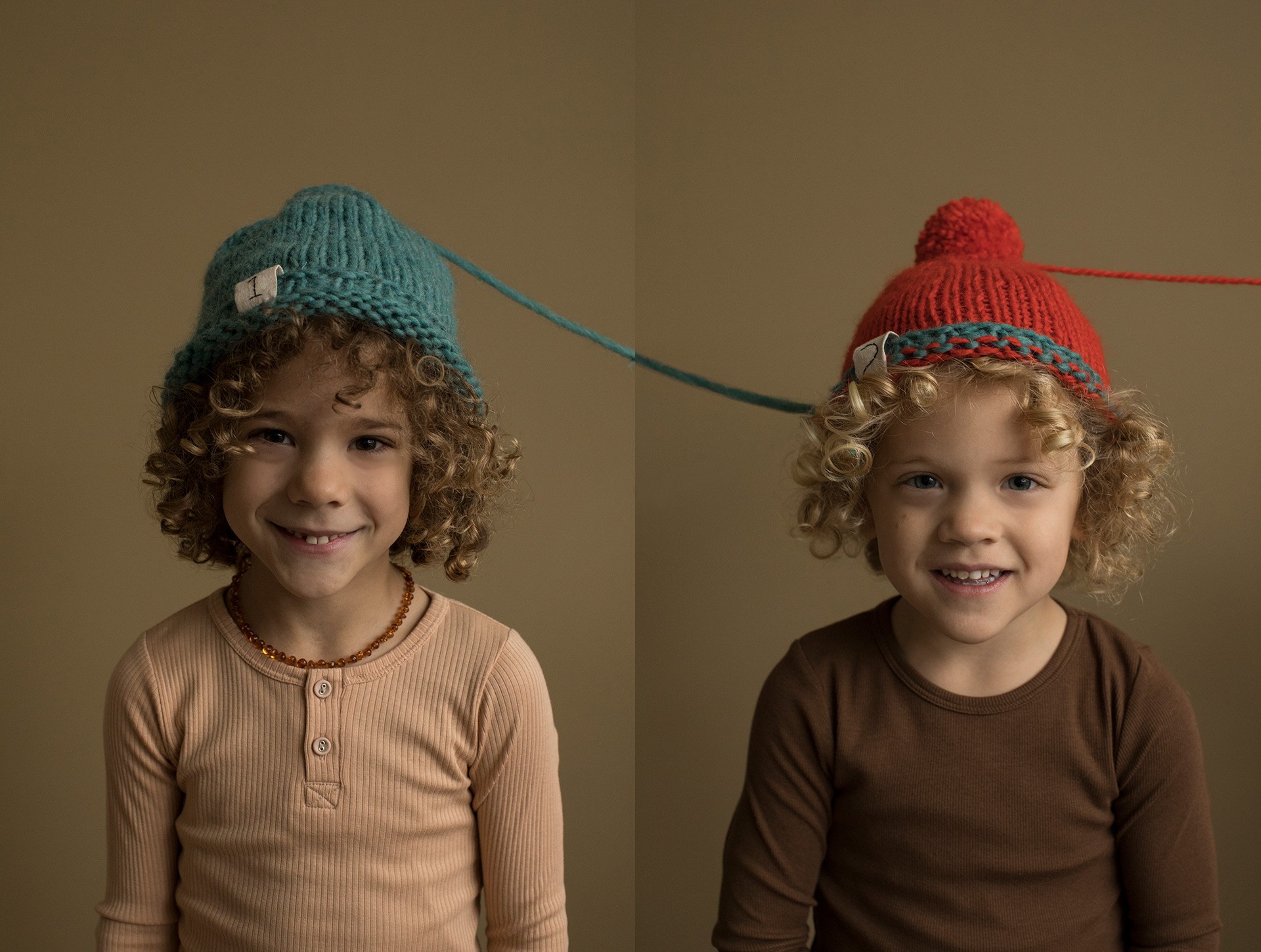 The children’s hats are hand knitted and have different kinds of yarns, so one hat will fall a bit bigger or smaller than the other. It’s just what you love…