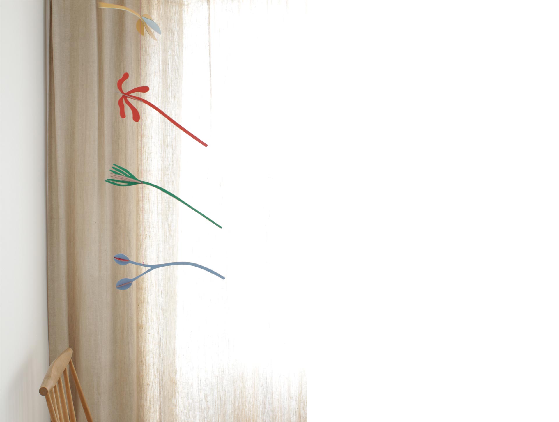 All flowers have two colors, the front and the back. When the mobile moves and spins around you will always see changes of color.