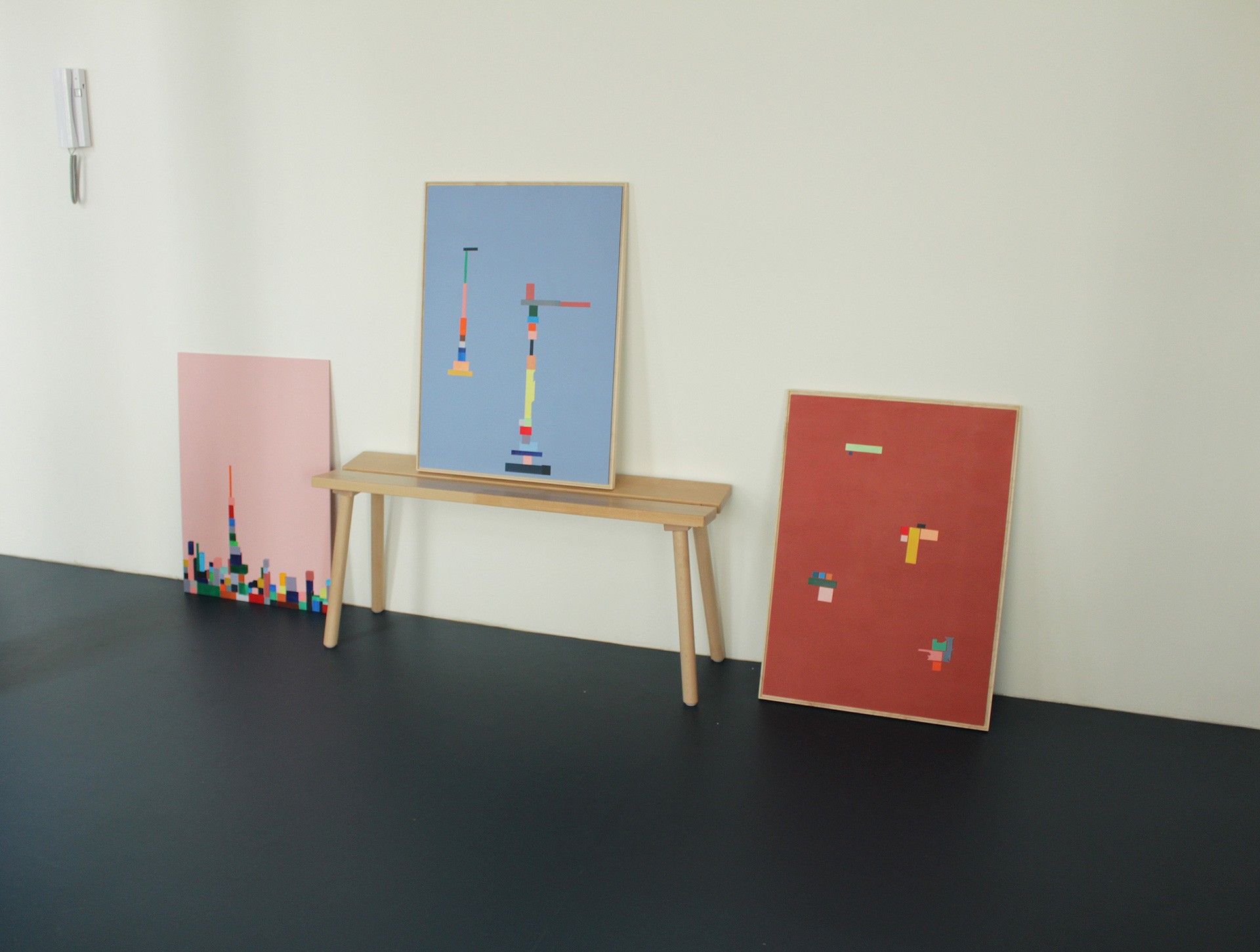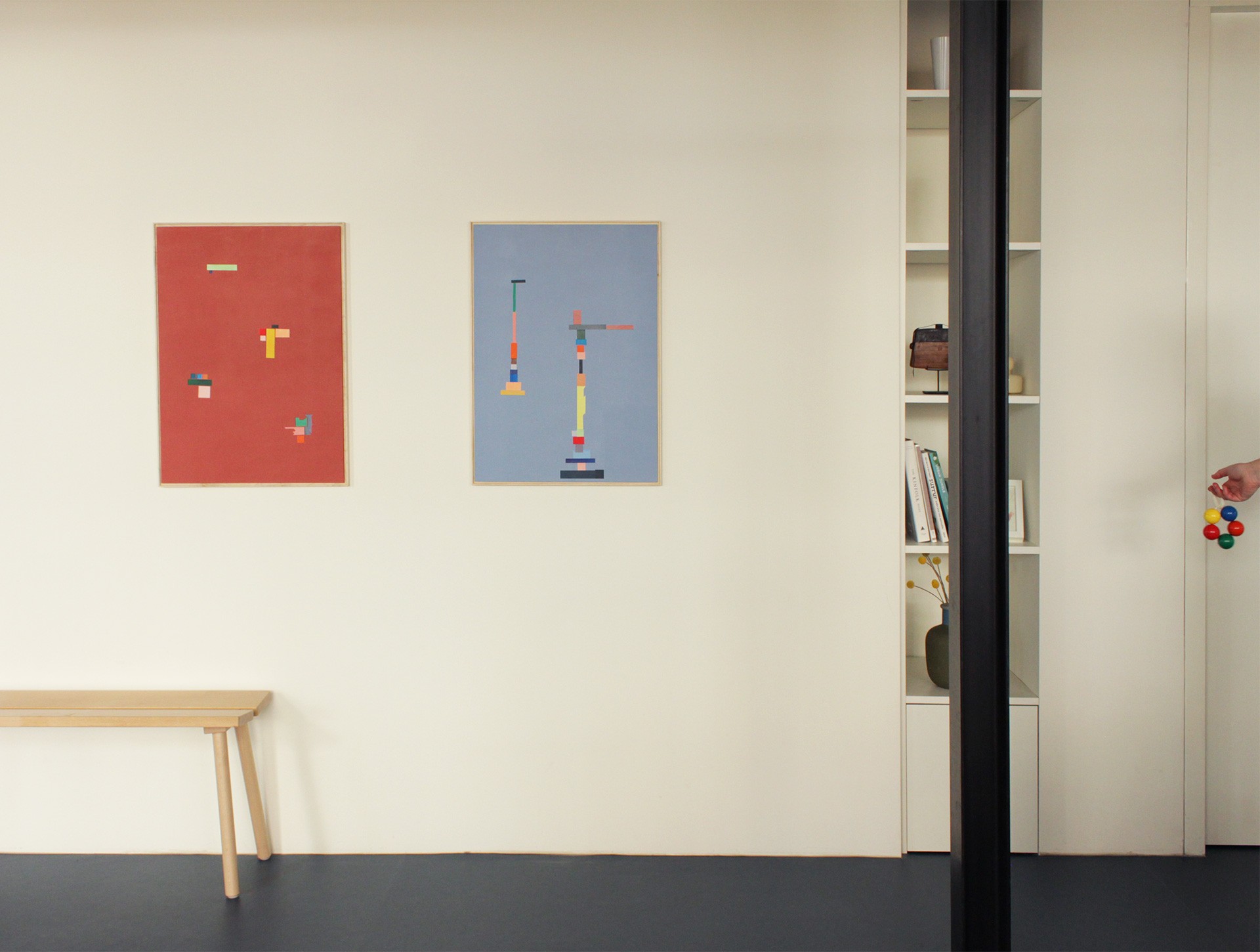 A series of 6 paintings, inspired by my 6 year old son Klaas. Klaas is always busy building and when a building is finished a picture has to be taken of it, so it can be demolished. For me the inspiration to start with a series of “flat” buildings.