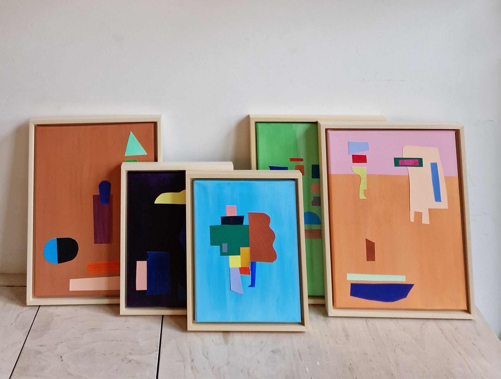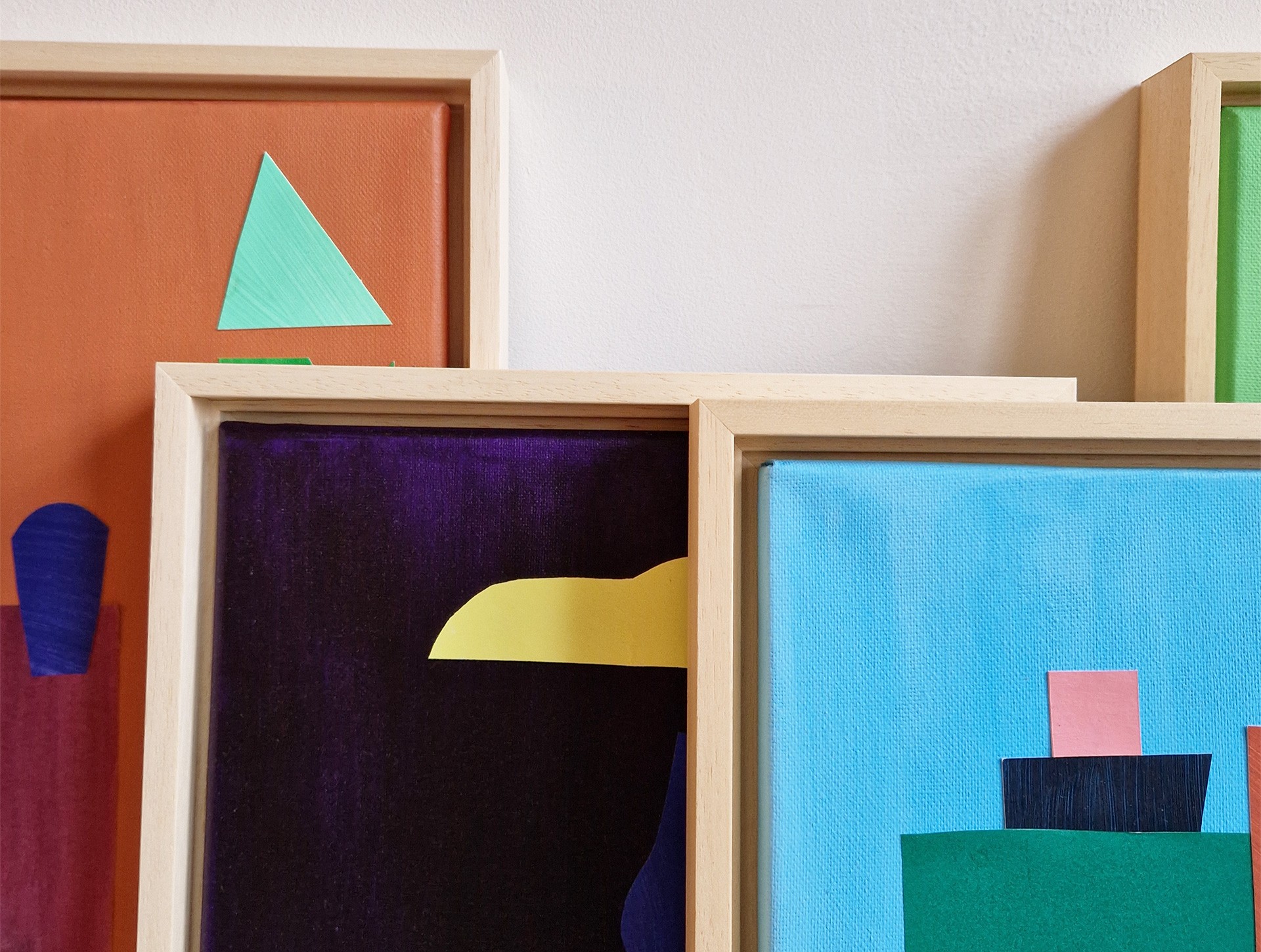Material: Acrylic on canvas, paper painted with different materials. Including wooden frame.