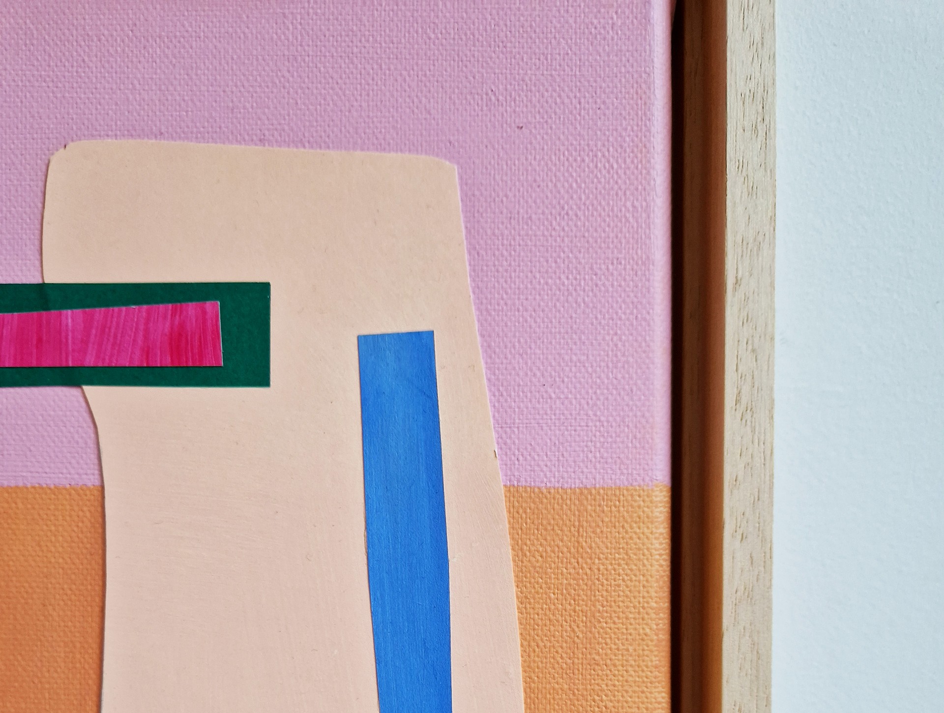 Material: Acrylic on canvas, paper painted with different materials. Including wooden frame.