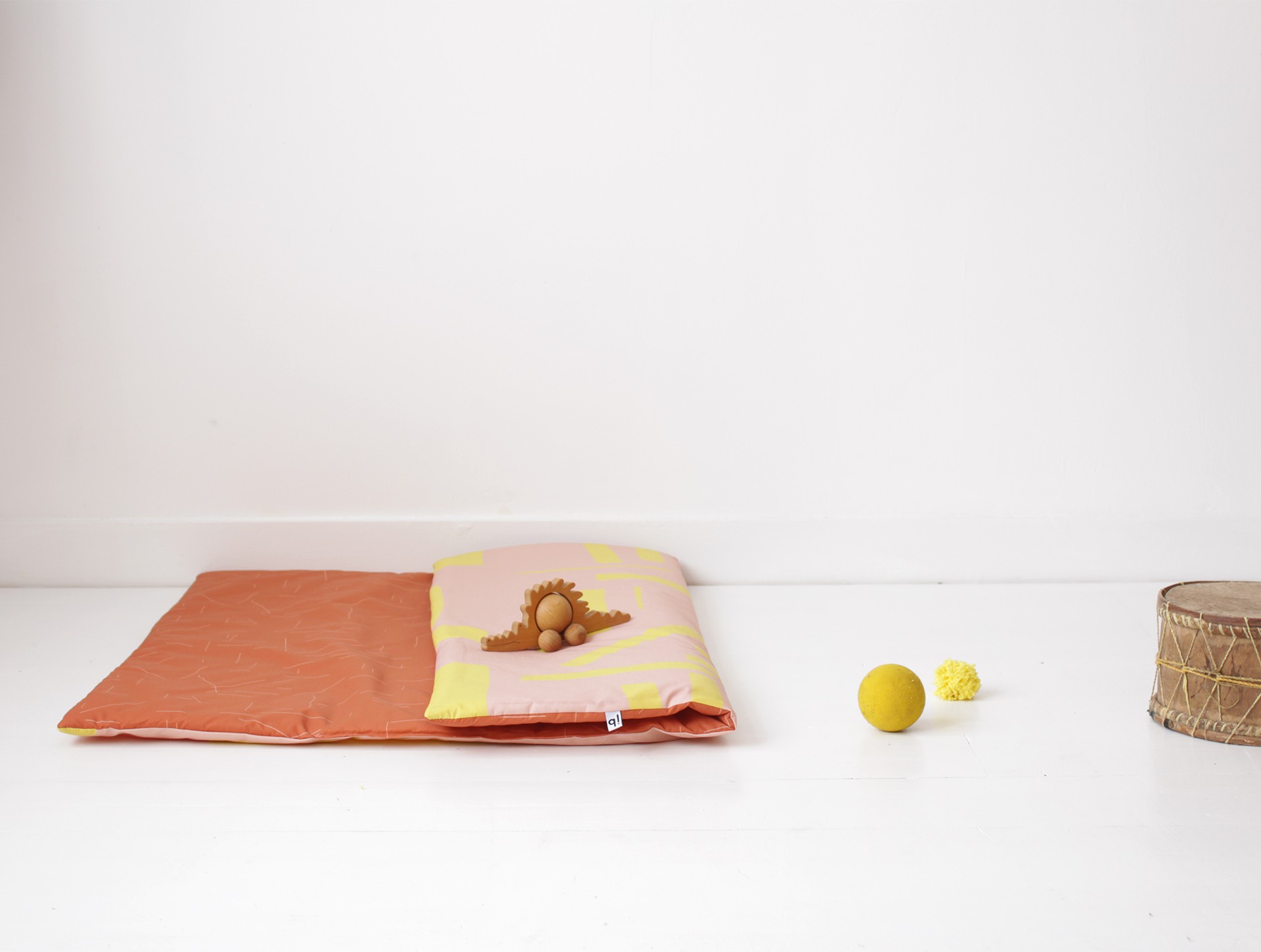 The printing of the fabric is done in the Netherlands with inks that have the GOTS quality mark. In the Netherlands, the playmat is made by hand.