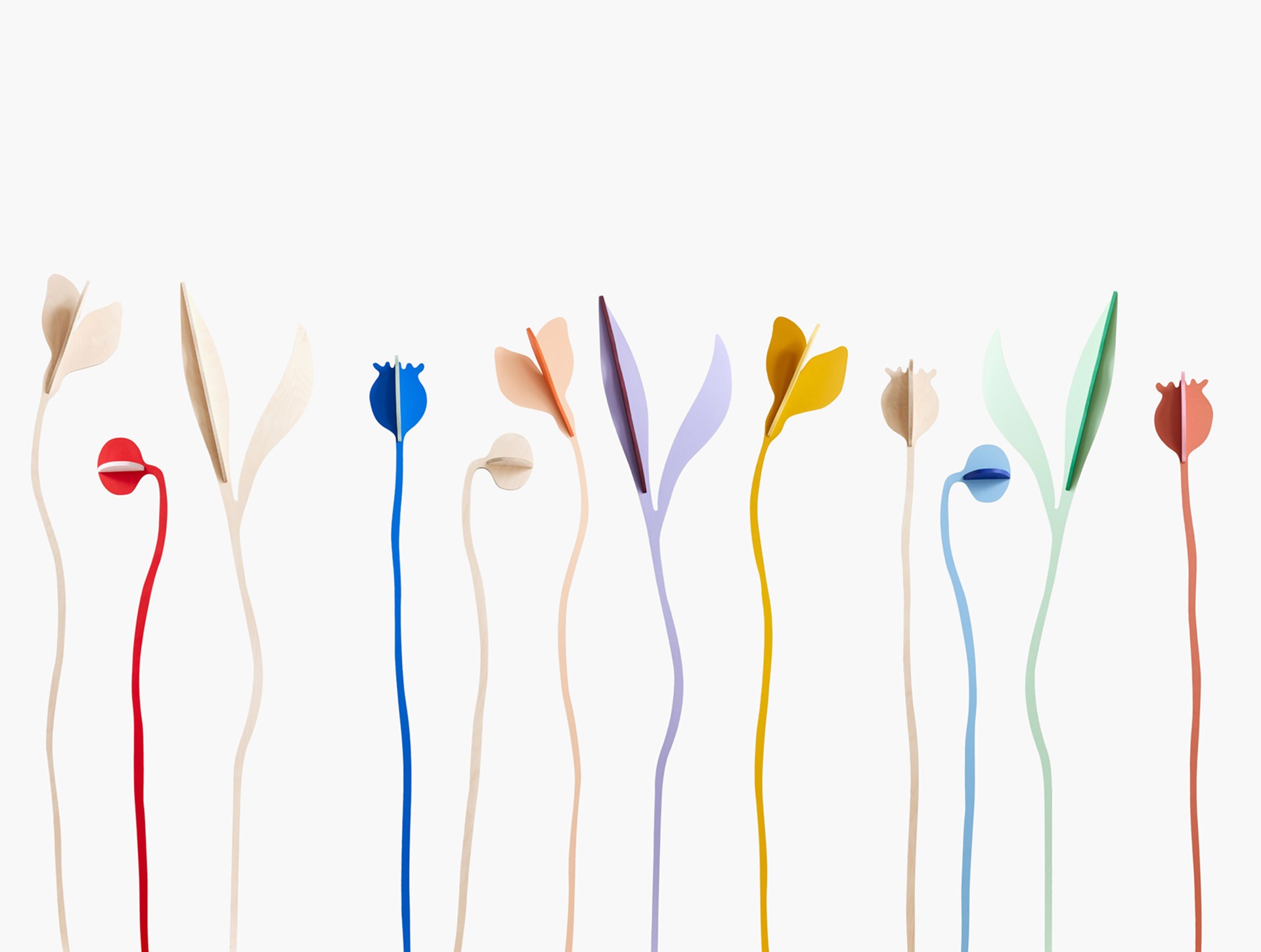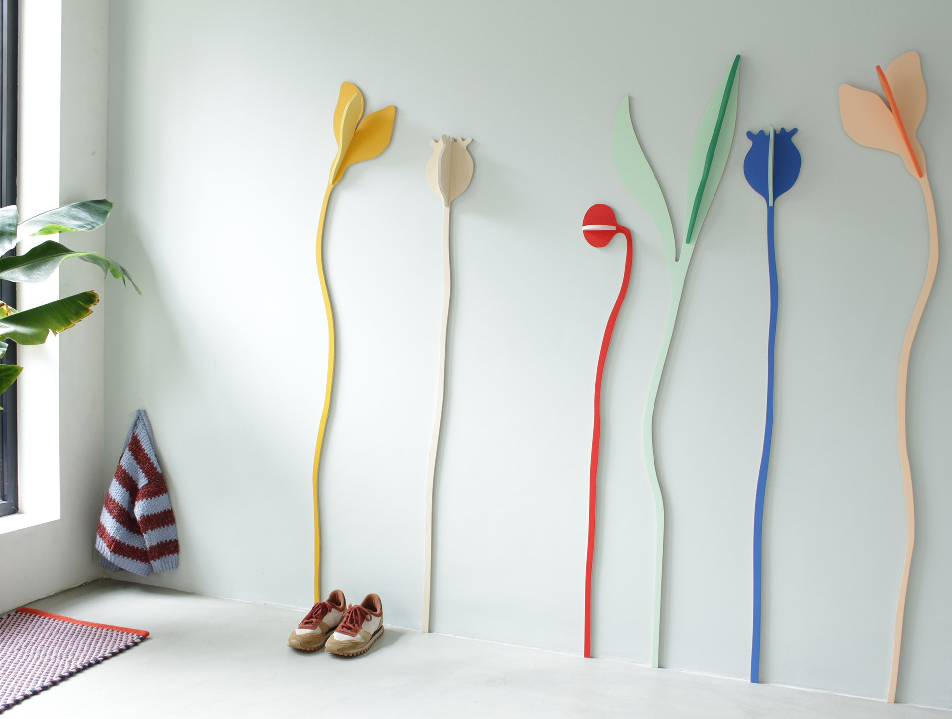 For Atelier Toit (which is a new brand from Studio Roof) Jantien Baas has designed a series of super large flowers. Made of birch plywood and hand painted in Amsterdam in the own studio of Atelier Toit and Studio Roof. You can attach the flowers to your wall with 2 nails. A special object for your wall. Each flower is available in 3 variations. This flower is available in apricot, in blue and in natural lacquered.