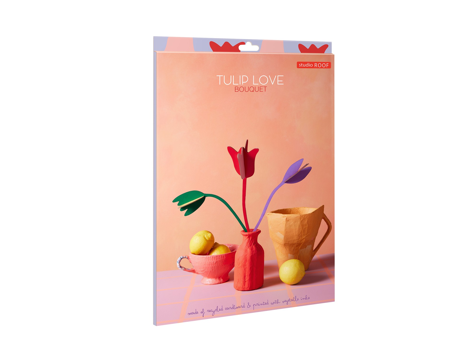 Made of recycled cardboard and printed with vegetable inks.