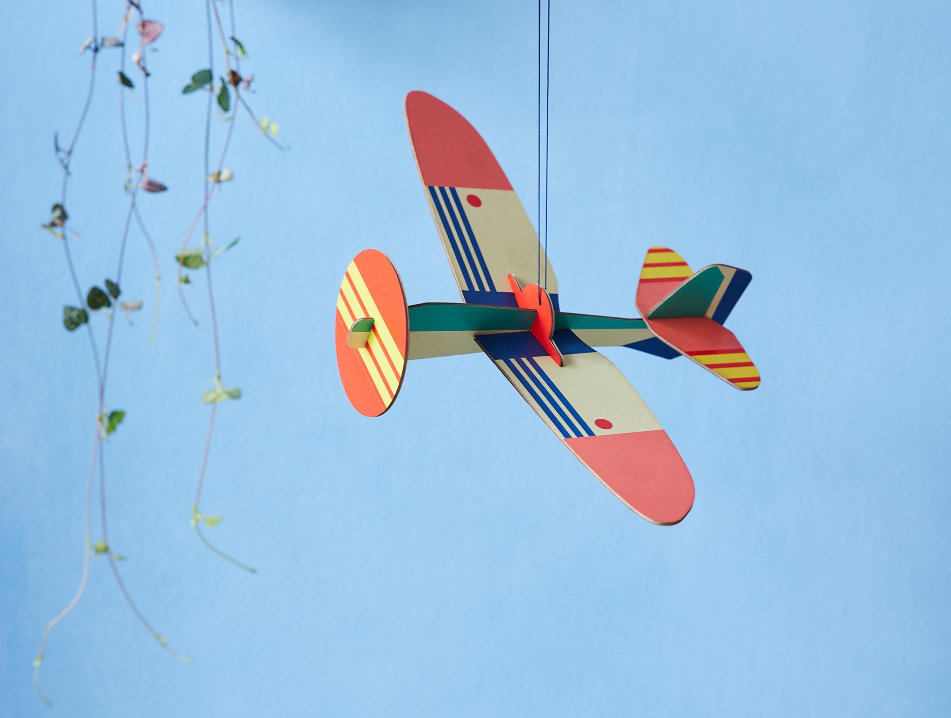Een mooi grafisch vliegtuigje om op te hangen.. Als een mobiel hang je het met een punaise aan het plafond. Superleuk voor in de kinderkamer of als cadeau te doen.