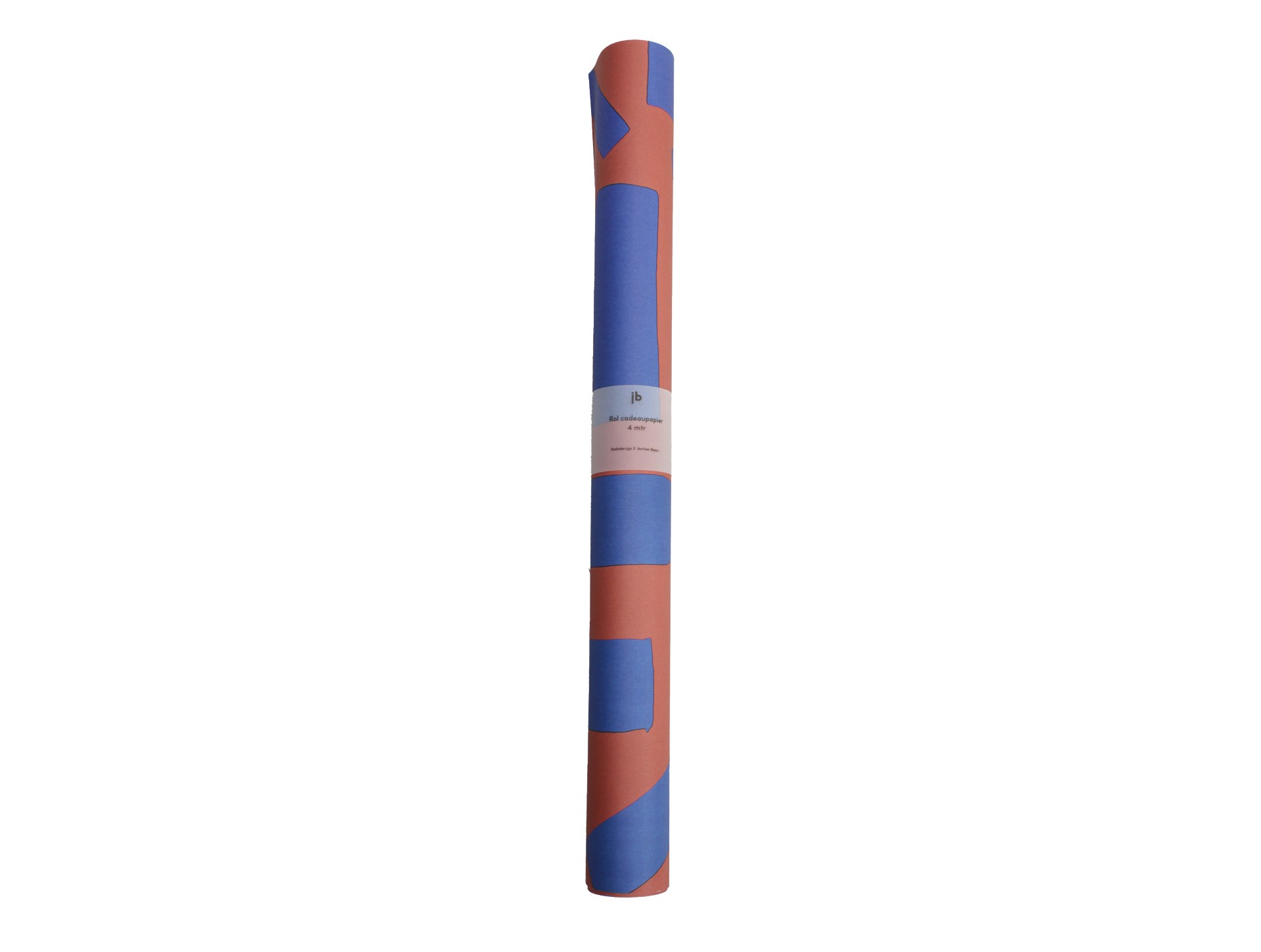 Roest kleurig  papier met een bedrukking van blauwe strepen.